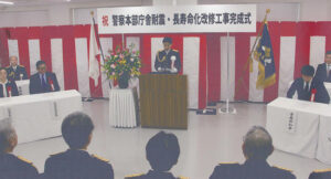 この日は秋晴れの下、潮田健太郎署長を含む12人がランニングポリスとして活動。警察官募集や防犯等を呼びかけるゼッケンを背に、手にはのぼり旗を掲げてコースを走り(写真)、市民ランナーの安全を見守った。また、県警マスコットのコノハけいぶも応援に駆けつけ、市民に警察を身近に感じてもらえる一日となった。