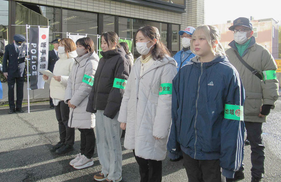 岩手県警が大学生らと盛岡市内の繁華街を防犯パトロール