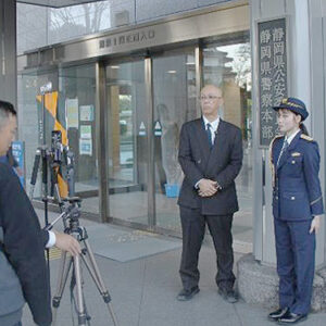 「110番の日」の1月10日、福島県いわき東署はフリーアナウンサーの直川貴博さんに一日警察署長を委嘱し、緊急通報の適切な利用を呼びかける広報活動を行った(写真)。