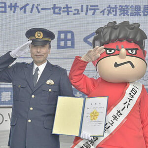 山梨県警は2月20日、元プロレスラーの武藤敬司さんがモデルのデジタルヒューマン「AI武藤敬司」に一日サイバー犯罪対策課長を委嘱し、啓発イベントを本部庁舎の大会議室で催した(写真)。