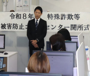 岐阜県警本部サイバー犯罪対策課は3月7日、CBCテレビのアナウンサー・中村彩賀さんを一日サイバー犯罪対策課長に迎え(写真)、関市の大型商業施設「マーゴ本館」で広報啓発活動を行った。サポート詐欺やフィッシング、不正送金などの被害防止を呼びかけた。